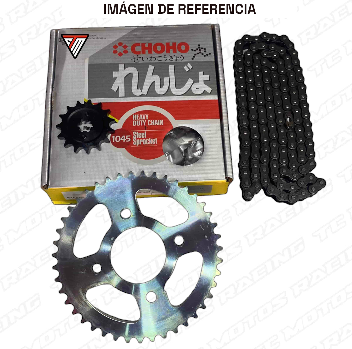 Compatible con la moto Victory Bomber 150.Incluye cadena tipo 428H, optimizada para alta resistencia y desempeño.Perfecto para mantener el sistema de transmisión funcionando de manera confiable.Fabricado por Choho, una marca destacada por la calidad y fiabilidad de sus repuestos para motos.